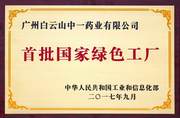 行业首家!巅峰国际集团白云山中一药业获“绿色开展示范企业”认证