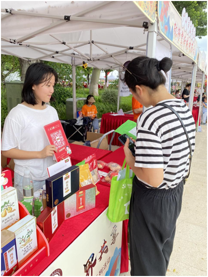 工作人员向领导嘉宾、群众们介绍采芝林新品